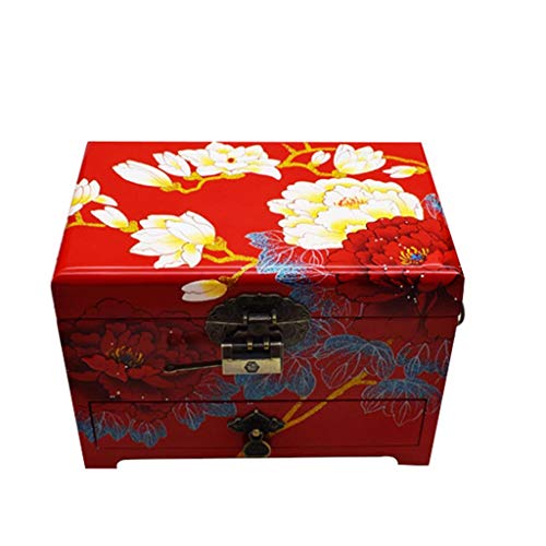 Bijoux meubles - ZHAO YING Pivoine & Magnolia - Boîte de Bijoux laquée de Grande capacité Peinte à la Main à Trois Couches de Grande capacité, Meubles et Cadeaux orientaux Chinois (Rouge) (Color : Red) examen